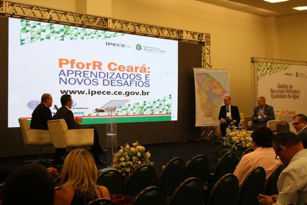 A Companhia de Gestão dos Recursos Hídricos (Cogerh) foi homenageada durante o Workshop PfoR Ceará, organizado pelo Instituto de Pesquisa e Estratégia Econômica do Estado (Ipece), em parceria com o Banco Mundial, durante esta sexta-feira (30). Com o tema, recursos hídricos e qualidade da água, o evento reuniu o presidente da Cogerh, João Lúcio Farias, o secretário dos Recursos Hídricos do Estado do Ceará, Francisco Teixeira, o presidente da Funceme, Eduardo Sávio e o professor de Recursos Hídricos (UFRJ), Jerson Kelman. O grupo debateu experiências nacionais no desenvolvimento de metodologia de qualidade da água e ações estratégicas na área de recursos hídricos.