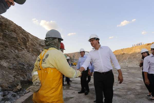Camilo Santana conversou com engenheiros e trabalhadores das obras da Barragem de Fronteiras e da CE-469