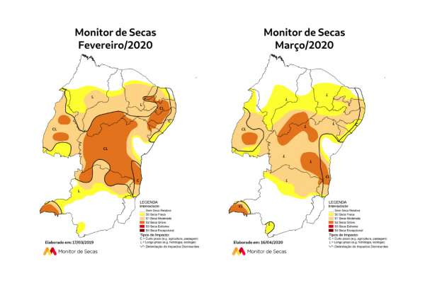 Com as chuvas de março, o Monitor de Secas registrou uma redução das áreas com seca no Ceará, Espírito Santo, Maranhão, Minas Gerais, Piauí, Rio Grande do Norte e Tocantins. No caso do Espírito Santos, o estado não registra nenhuma área com seca. Também houve a redução da gravidade das secas que acontecem em Alagoas, Bahia, Ceará, Maranhão, Minas Gerais, Paraíba, Pernambuco, Piauí, Rio Grande do Norte, Sergipe e Tocantins.