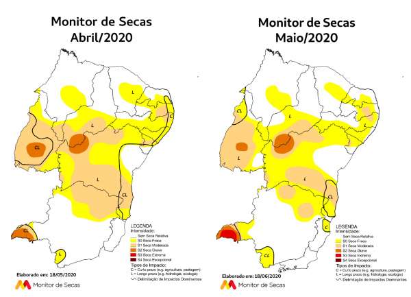 Além do Ceará, em seis estados houve a redução da gravidade ou área com algum nível de secas: Alagoas, Bahia, Maranhão, Paraíba, Pernambuco, Piauí, Sergipe e Tocantins.