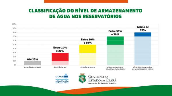 *Açudes estratégicos – A Cogerh monitora 155 reservatórios nas 12 bacias hidrográficas do Ceará. Todos têm importância seja para o abastecimento humano, seja para os chamados usos múltiplos. Por estratégicos entende-se aqueles reservatórios de abrangência regional, cuja a importância muitas vezes chega a extrapolar a bacia onde está situado. Dentre outros pode-se citar como exemplo: Banabuiú, Orós e Castanhão, ligados à Região Metropolitana de Fortaleza; e Açude Paulo Sarasate (Araras), ligado à Bacia dos Sertões de Crateús.