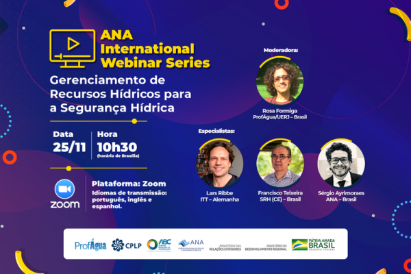 Possibilitar a troca de experiências entre os países sobre os avanços e desafios para o alcance da segurança hídrica por meio de um adequado gerenciamento de recursos hídricos é o objetivo do 3º Webinário Internacional promovido pela Agência Nacional de Águas e Saneamento Básico (ANA), no âmbito dos projetos com a Comunidade dos Países de Língua Portuguesa (CPLP) e o ProfÁgua, programa de mestrado profissional sobre Recursos Hídricos.